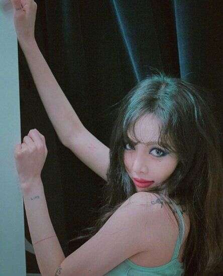 泫雅今日私服更新,绿色眼妆吸睛无数。