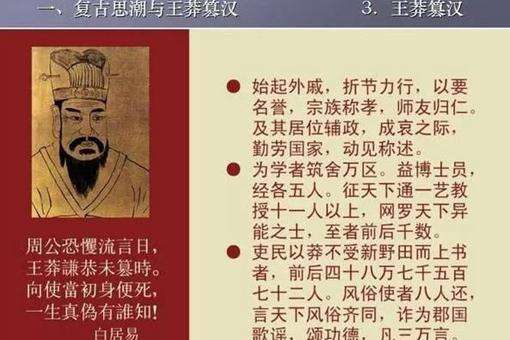 “周公恐惧流言日,王莽谦恭未篡时。向使当初身便死,一生真伪复谁知。”白居易在《放言》诗中以哲学思辨和矛盾的情绪对新朝建立者王莽作出了超脱感叹。透过泛黄的历史,依旧还能听到当时史学家对他的骂不绝口,集中了有史以来最激烈的词汇喷到他的身上。近代一些历史学家从多个宏观角度对其进行解读,由此成了为王莽“翻案”从批判逐渐走向建设的不同声音。