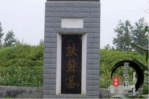 扶苏的墓到底在什幺地方,目前还有争议。已往的记载和传说,多认为扶苏的墓在陕西省绥德县城东面的疏属山上。现在,那山顶上还有一座八米高的长方形墓冢,并有太子祠和”秦长子扶苏墓”石碑一通。此墓冢修得雄崛奇伟,站在上面,可以将方圆三十里的山川景物一览无余。另外,绥德城里还有扶苏巷和扶苏庙,城北还有相传扶苏曾在那里赏过月亮的月宫寺。