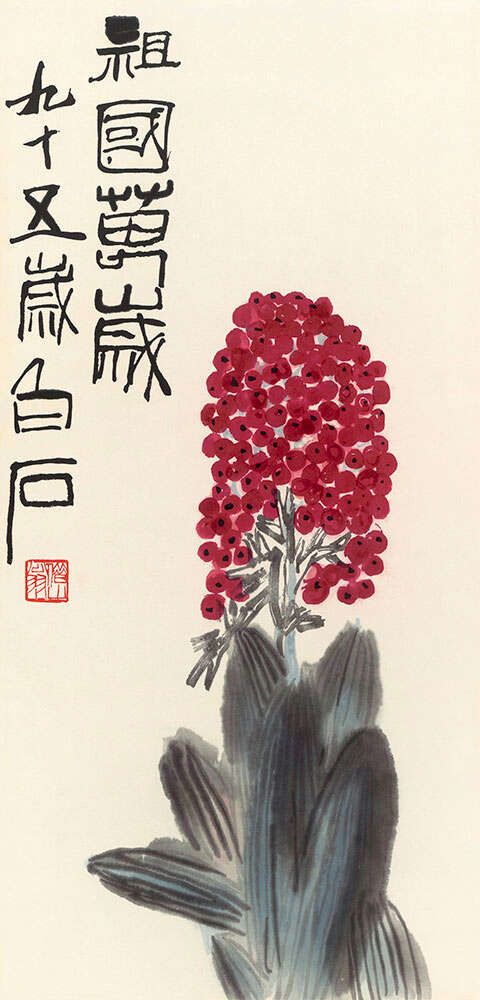 齐白石 《祖国万岁》纸本设色 67×33厘米 1955年作