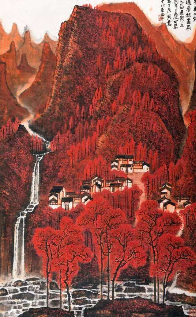 李可染 《万山红遍》 纸本设色 137厘米×85厘米 1964年 现藏于北京荣宝斋