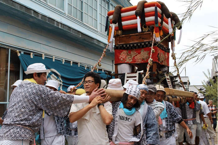 协助大崎下岛御手洗村村民维持一年一度的祭祀活动,过半的参与者已经不是本地人而是从附近村落和城市“借来”的志愿者 图片来源:渠蒙