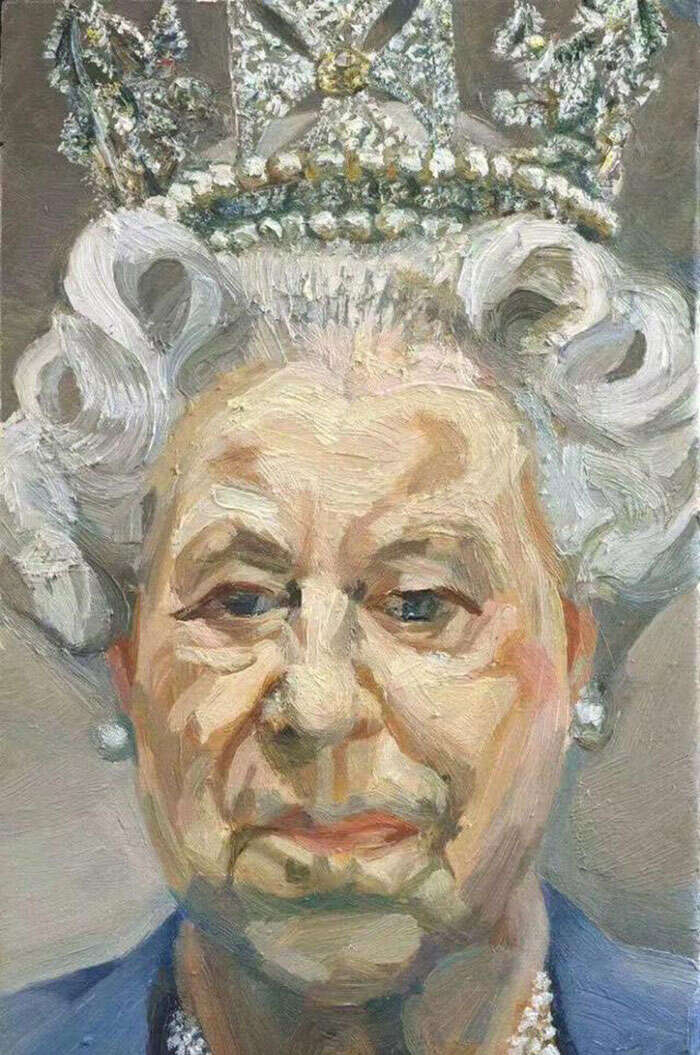 有评论曾说,尽管尺寸不大,弗洛伊德却将这次皇家肖像当成了一次冒险,他想要捕捉并放大英国女王内心人性的一面,而非其华贵的外表或浮于表面的一瞥。