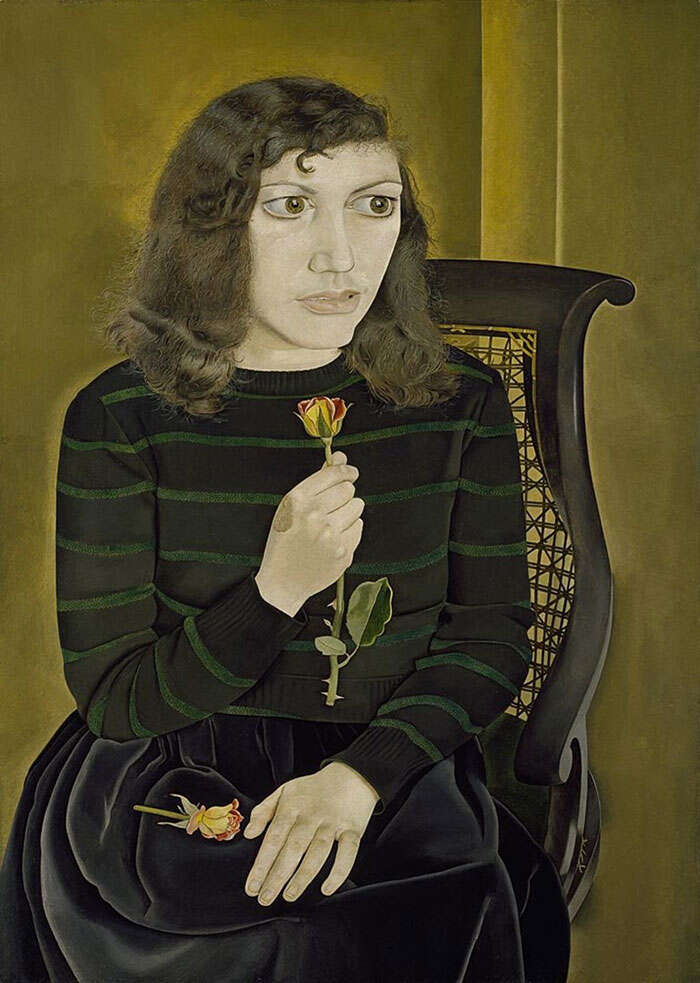 《拿玫瑰的女孩》(Girl With Roses), 卢西安·弗洛伊德,1948年,布面油画©Bridgeman Images