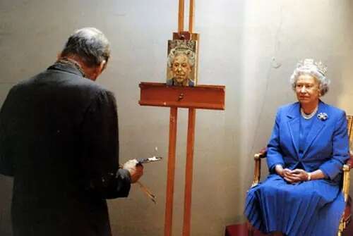卢西安·弗洛伊德为英国女王伊丽莎白二世画像,地点位于艺术家的个人工作室。