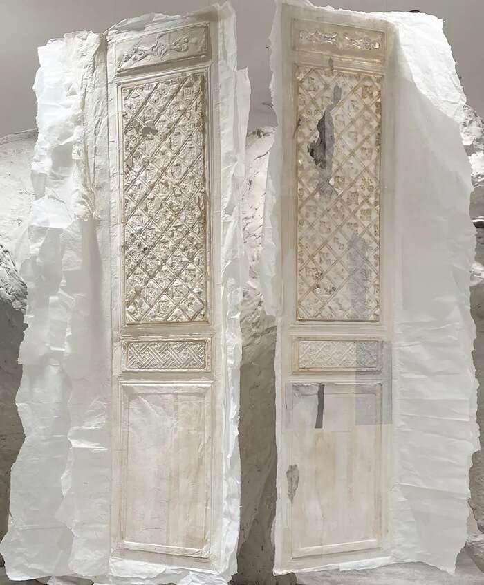 林延,《北京门道#1 & #2》,2021,手工宣纸,222×94 & 222x114cm (图片由艺术家提供)