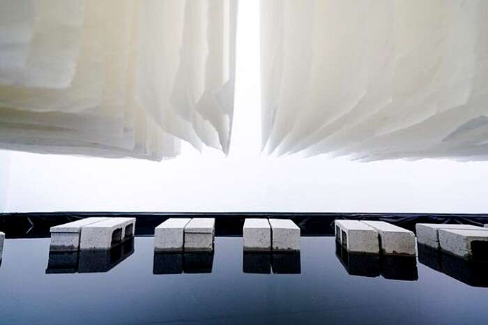 林延 天璣II -反映, 2017-2018 宣纸,砖,水和镜子,场域特定装置 6 x 5 x 3.4cm (图片由上海狮语画廊提供)