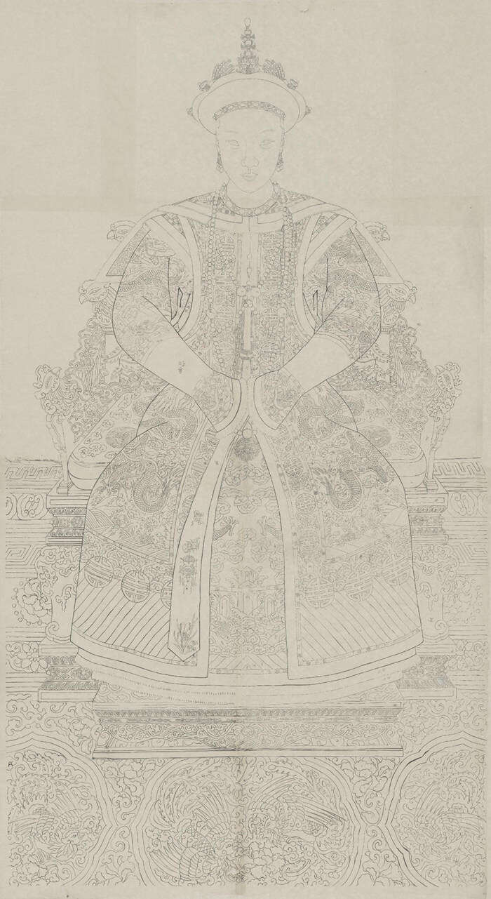 孝哲毅皇后朝服像画稿 清光绪元年(1875)纸本水墨画稿 故宫博物院