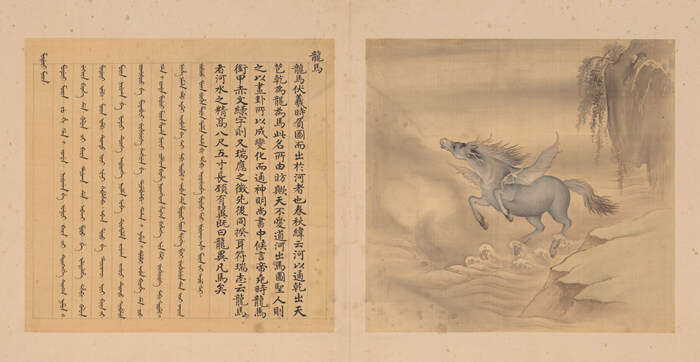 余省(活跃于约 1736-1795 年)、张为邦(活跃于约 1723-1761 年)《兽谱·龙马图》清乾隆二十六年(1761 年)绢本设色册页 故宫博物院