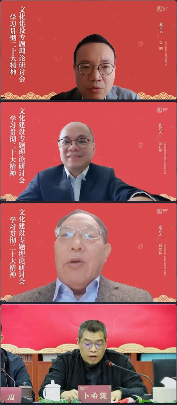 中国文化产业协会秘书长金鹏、中国教育国际交流协会副秘书长余有根、中国老年学和老年医学学会会长刘维林、海峡两岸文化创意产业高校研究联盟副理事长卜希霆出席会议并致辞