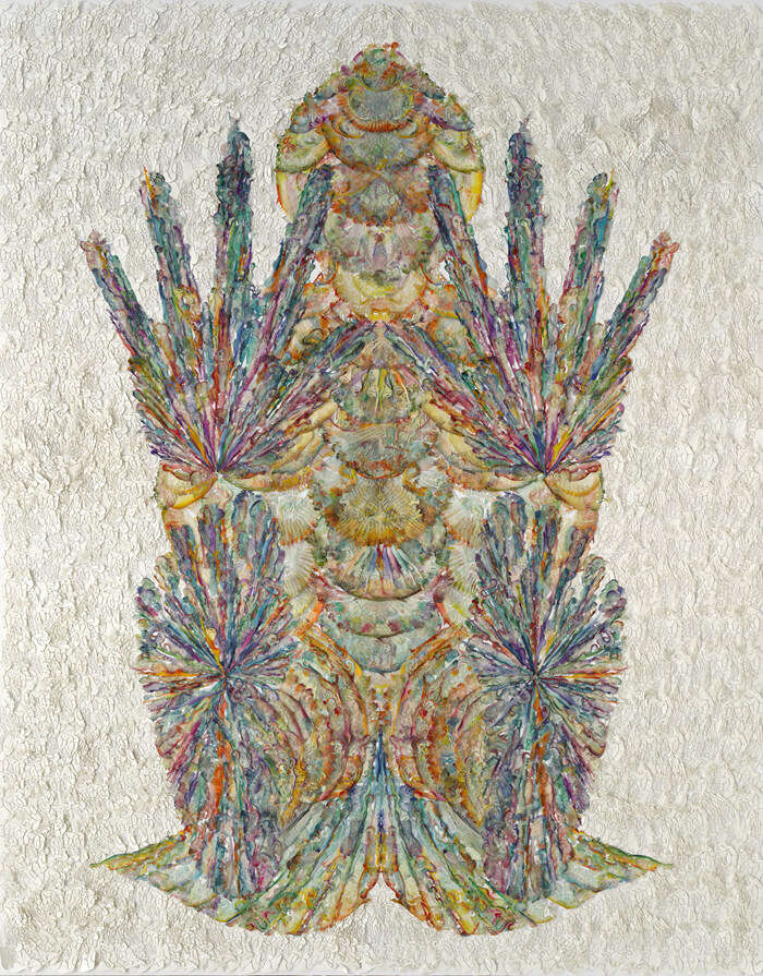 邬建安-《手足俱全,得道近仙》-195×245cm-水彩纸镂刻,水彩、丙烯、浸蜂蜡,棉线缝缀于背绢宣纸-2015