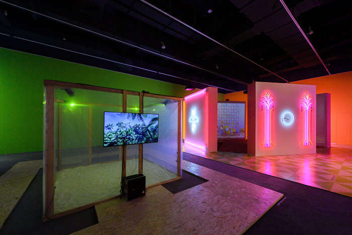 “飞越之线”呈现了美术馆方的国际视野,对于展览品质与学术力的高标准把控,亦关注对当下时代精神与对未来生活可能性的探讨。不同媒介与不同主题的艺术实践,思考与探索人类与世界未来情态可能性的机遇与希望。通过国内外顶级的艺术家阵容,他们结合AR技术、人工智能、影像技术、生物技术、机械技术、网络与信息技术等不同时代下前沿的科技手段,带来了十分重磅的作品,为科技艺术这一领域带来了最先锋的视角:Hito Steyerl带来作品《莱奥纳多的潜水艇》,该作品曾参加过被誉为“西方艺术的风向标”的威尼斯双年展,策展人将作品完全还原威尼斯双年展展出现场,让人们穿越时空的体验——该作品也是在国内首次展出;而Pierre Huyghe则带来了其2012年卡塞尔文献展委约创作的作品《未耕种》。该作品是当年卡塞尔文献展最具代表性的作品之一,从某种意义上是第一次在主流的当代艺术与主流媒介中大规模呈现“后人类”的思考;此外 Tomás Saraceno的《飞行世》、Alex Da Corte的《东方运动》、张培力的《卷帘盒子》、周啸虎的《地上乐园》等作品,也都是艺术家最具代表性与重要性的作品呈现。
