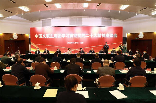 中国文联主席团学习贯彻党的二十大精神座谈会现场。中国文联供图