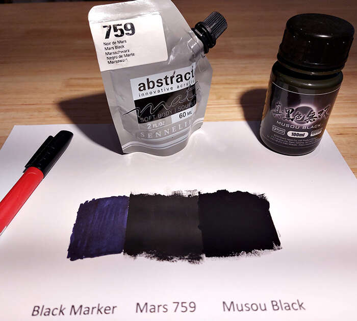 2020年日本Koyo东方公司研制的“黑色无双(MusouBlack)”颜料面世,这是一款号称 “世界上最黑的水性丙烯酸涂料”,且符合环保法规,几乎毫无气味。