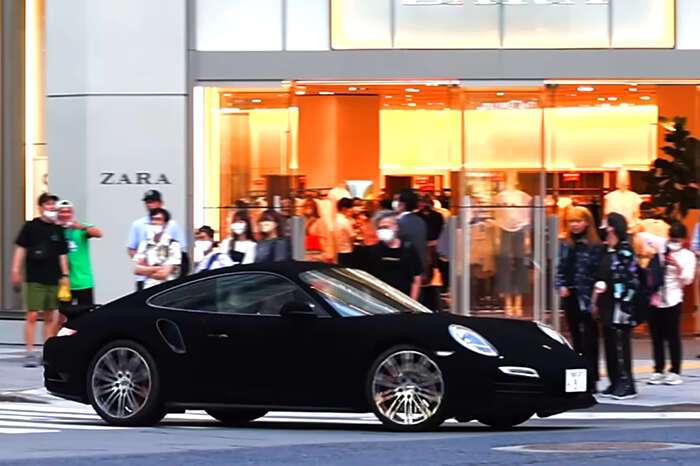“黑色无双”也效仿“VantaBlack”喷涂到汽车表面,这是在岐阜市街头的一款“无双黑保时捷”。
