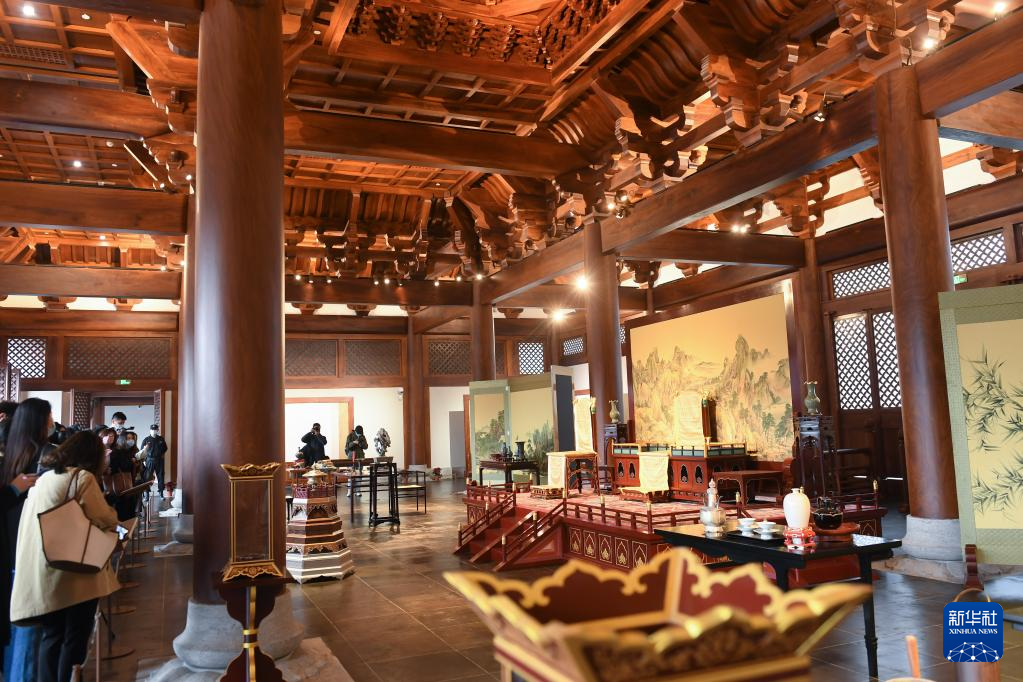 媒体记者在南宋德寿宫遗址博物馆重华殿内参观(11月14日摄)。