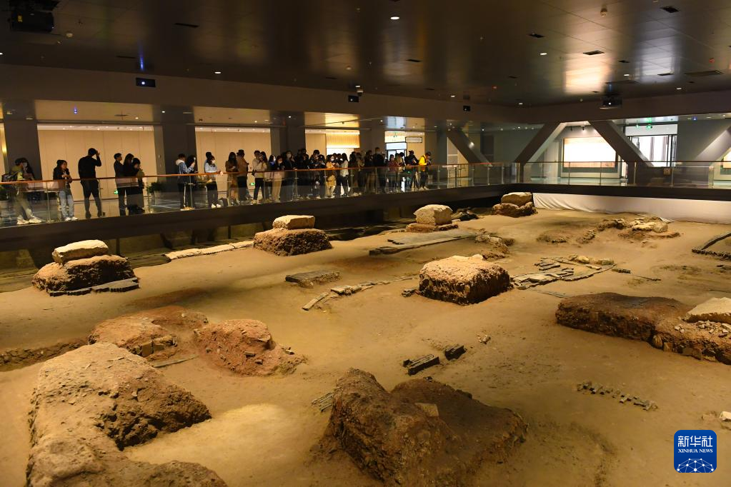 南宋德寿宫遗址博物馆内展示的宫苑建筑遗迹(11月14日摄)。