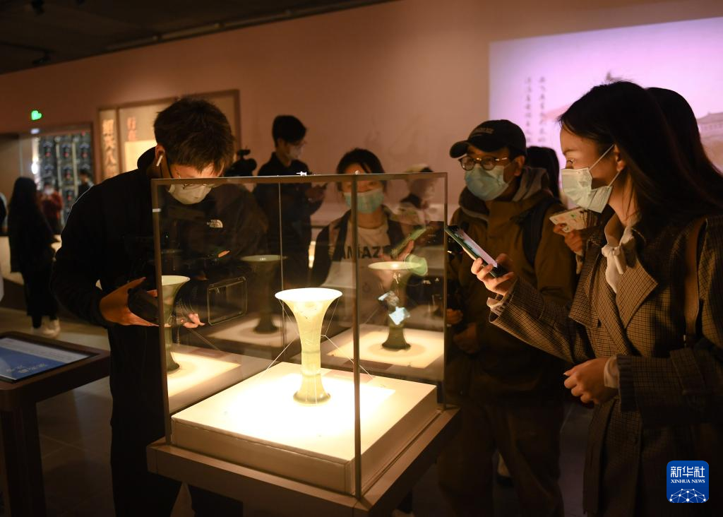 11月14日,媒体记者在观看南宋德寿宫遗址博物馆内展陈的南宋器物。