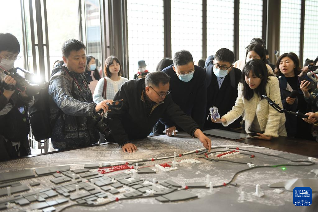 11月14日,专家向媒体记者介绍南宋临安城布局。