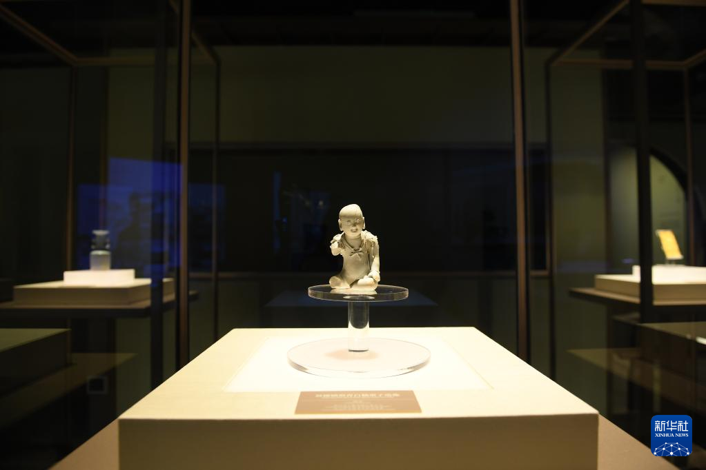 南宋德寿宫遗址博物馆陈列的出土于杭州的青白瓷童子像(11月14日摄)。