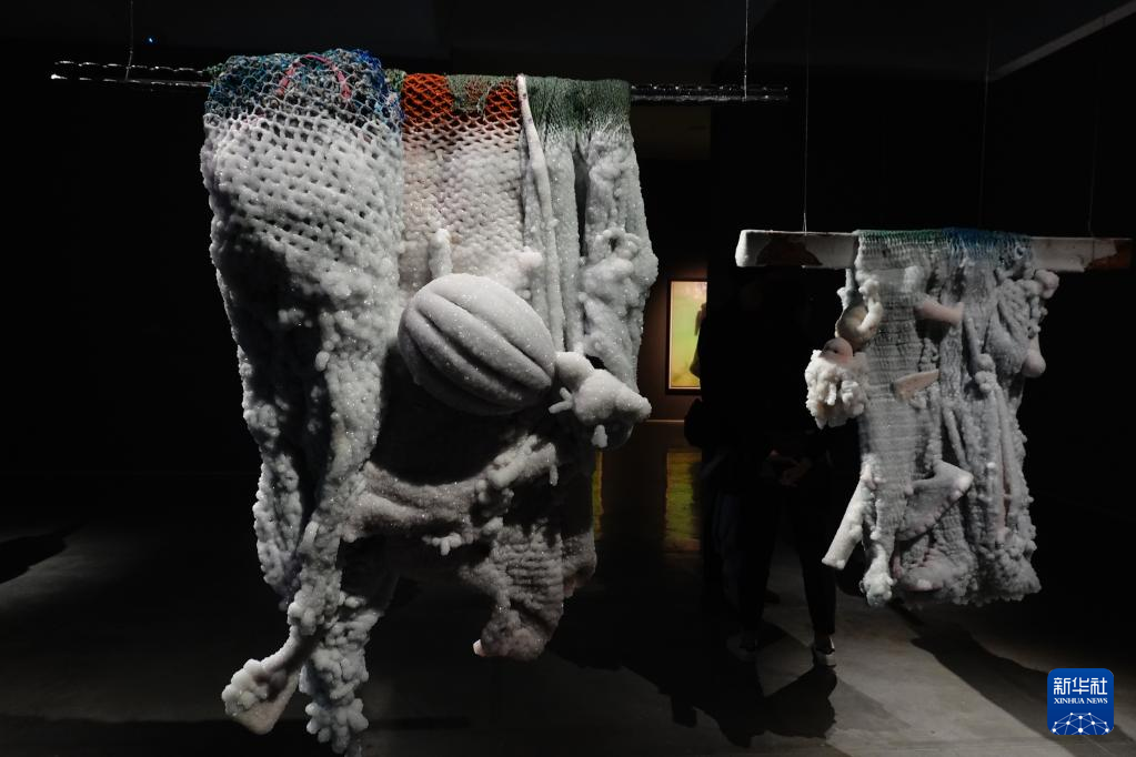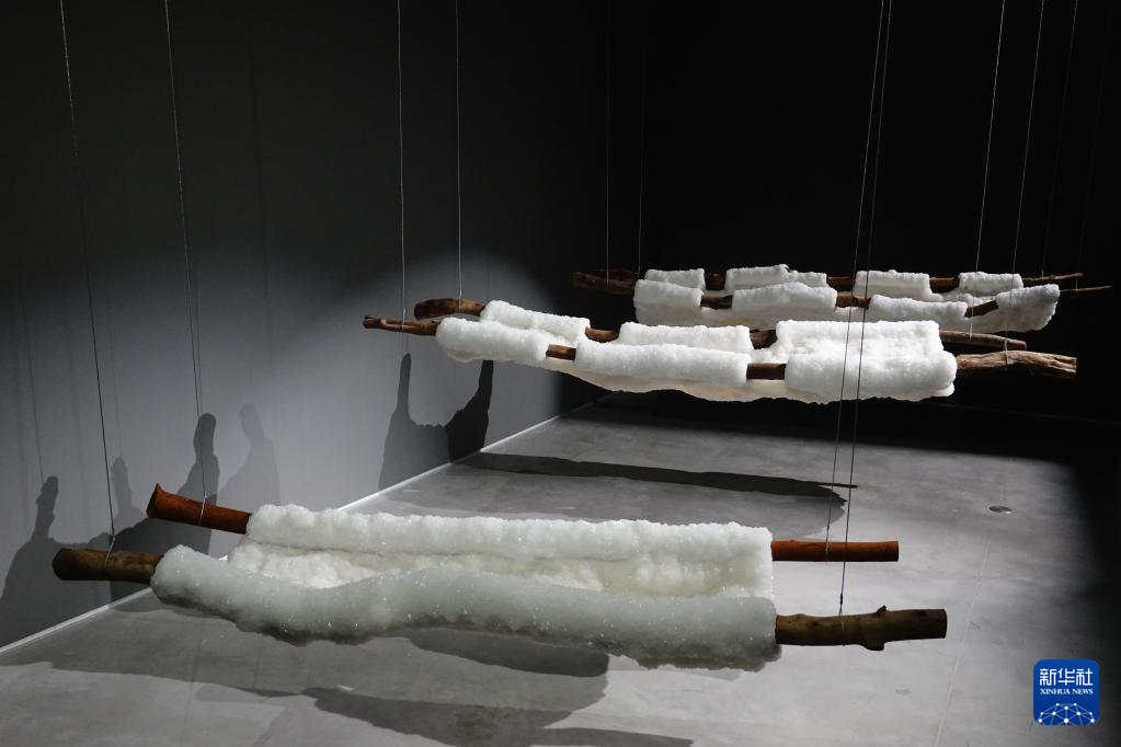这是11月12日在位于西耶路撒冷的以色列博物馆拍摄的死海盐渍艺术品。新华社记者 王卓伦 摄