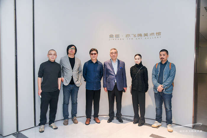 左起:艺术家贺勋、艺术家于艾君、策展人郑闻、执行馆长陈逸鸣、艺术家张瑛、艺术家方凯(图片©金臣亦飞鸣美术馆)
