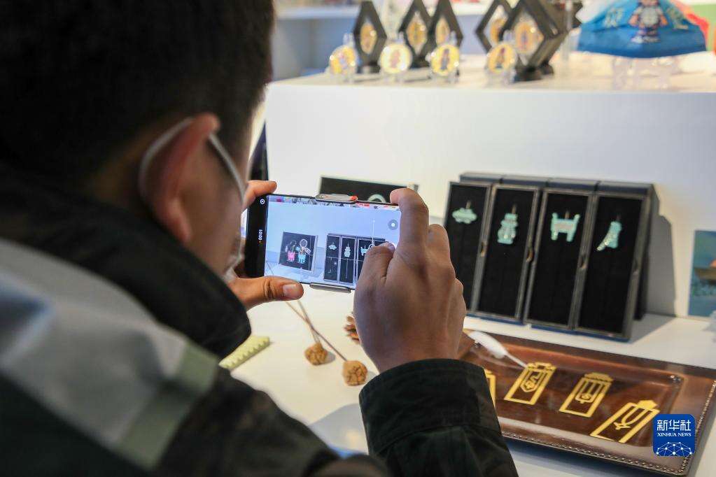 11月16日,游客在中国文字博物馆续建工程展区内拍摄文创产品。