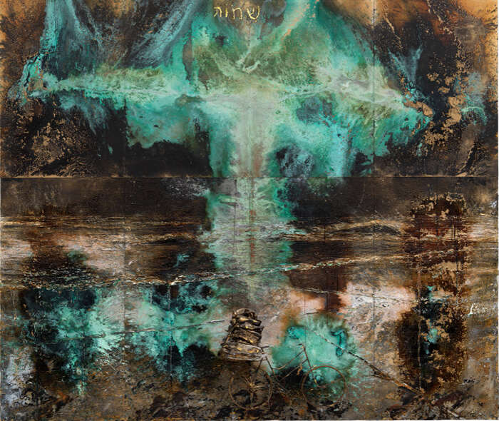 基弗对材料的融合方法延伸到他对历史、文学和神话的理解,他认为它们是影响当代的力量。在这批新作品中,他结合了“出埃及记”中的希伯来文铭文,以及对其叙述的主题参考,并融合了多种其他来源。这些画作充满了民族、地点和时代之间的象征性界限,是一种形而上学的寓言,沉思于失落与解脱、剥夺与归乡。