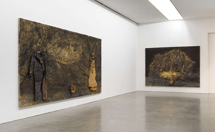 基弗(Anselm Kiefer)在纽约和洛杉矶展出的大型画作使用了多种材料,包括油漆、赤土陶器、织物、绳索、金属丝、现成物品、电解沉积物和金属(包括铜和金箔)。这些作品混合了卑微和崇高,充满了姿态、蜕变感和炼金术般的象征意义。