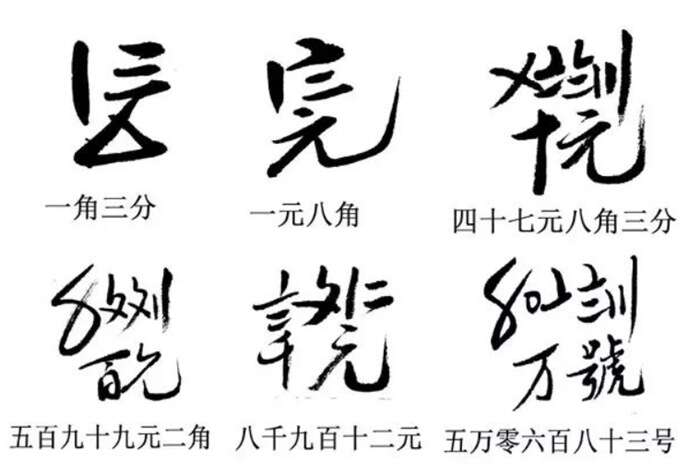 表示价格时,数字与单位“元”“角”合体成方块状,单位在苏州码下面。“角”化作了“△”;有“元”时,不需写“角”;“分”字不需出现。有“万”时,不需写“千”;有“千”时,不需写“百”,以此类推。每一次读数犹如一次解码,每一次书写仿佛一次创作,如行云流水般流畅。在这一个个价码身上,既看到几何,数字,又体现书法、笔墨,这是历史的符号,也是艺术的符号。