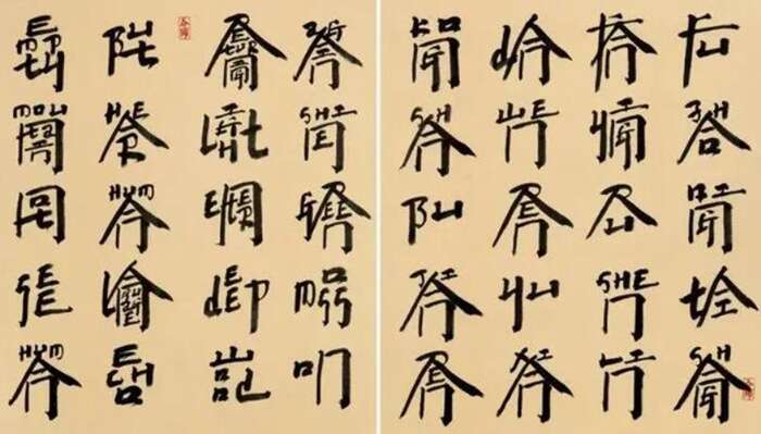 徐冰 新英文书法:王维鹿柴(双联作) 墨纸本 | 90 × 75 cm × 2