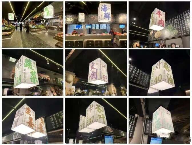 苏州双塔市集——最具温情地。门口的两块牌子,以及在菜场里每家店铺的招牌上的苏州码子,不再是算账计数用的数字,而是成了富有设计感的新元素。而logo“双塔”的每一笔一划,实则也是一组苏州码子设计组合而成,凝练着书法的苍劲笔锋,既富有传统姑苏文化,同时又充满活力。加之“市集”二字的篆刻红章,无不体现古老的民间记忆,悠远的江南情思。