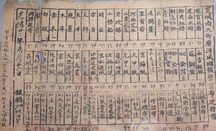 光绪二十二年宽城南大街广源成顺报杂货布疋行情价目单 图源:孔夫子旧书网