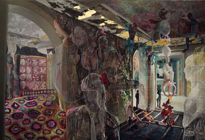 《流放与王国》,水彩纸上综合材料,150×224cm,2022