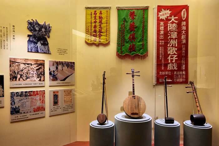 芗剧乐器、福建省张骤芗剧团赴台湾演出时的宣传锦旗及受赠的纪念锦旗