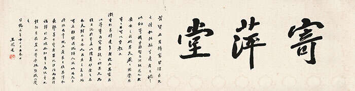 另一件改变齐白石人生轨迹的事情,就是拜入王门,成为湘绮弟子。这位老师正是晚清巨儒王闿运。王闿运在清末民初的政坛、文坛声名显赫,弟子众多。其中,门人夏寿田、郭人漳邀请齐白石远游,促成了白石早年的“五出五归”;杨潜庵与齐白石同居法源寺,杨度更为齐白石打理财务。齐白石初入京城,能够快速结识京中的文艺好友,湘绮弟子的身份十分重要。当年,在齐白石宣武门内劈柴胡同家中,就挂着王闿运为其题写的“寄萍堂”横额,此次也将与观众见面。