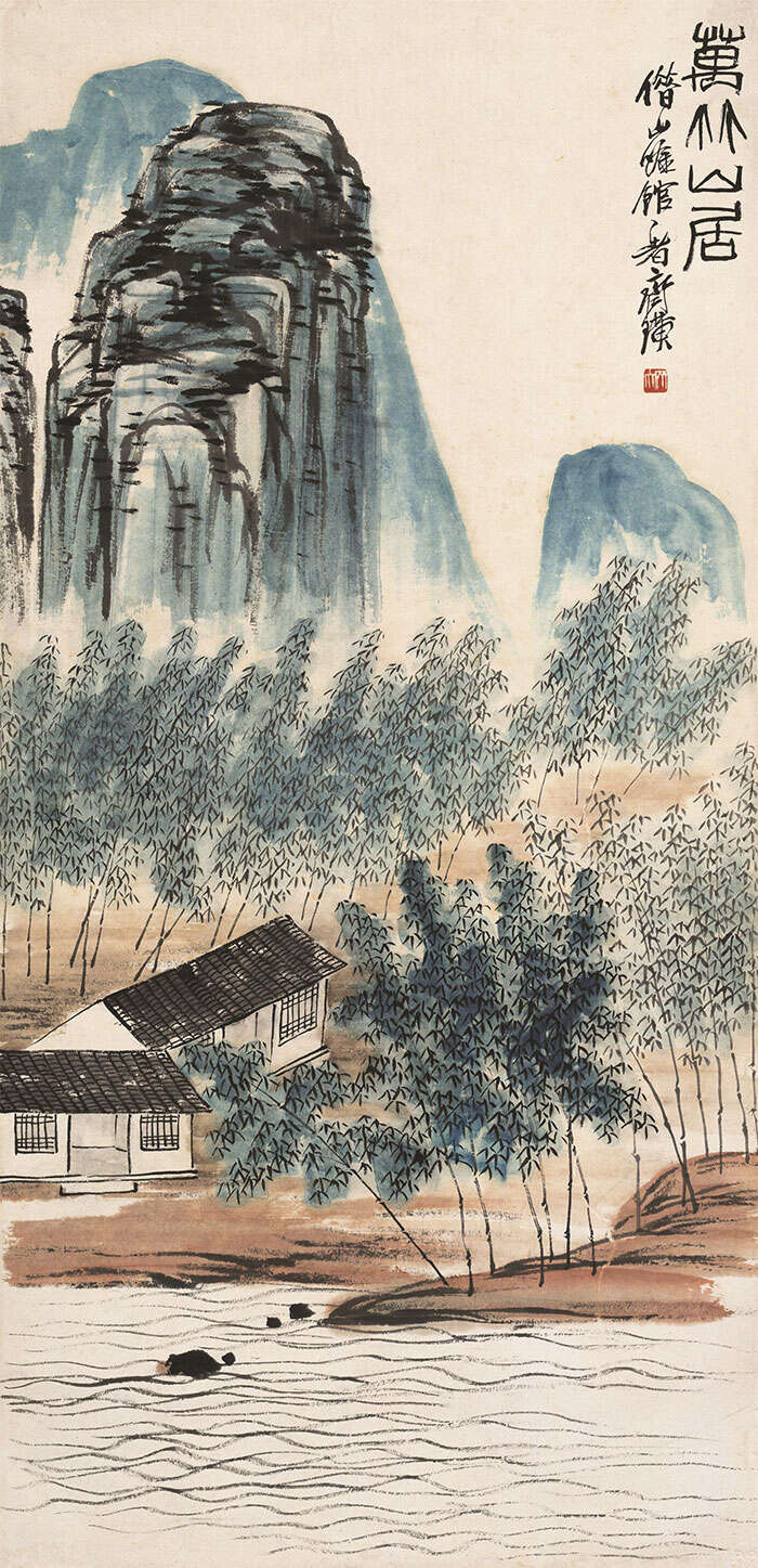 万竹山居,纸本设色,题款:万竹山居 借山吟馆主者齐璜。