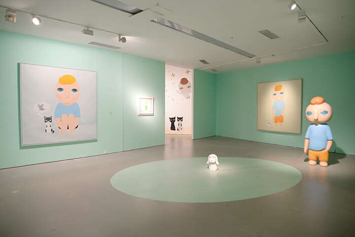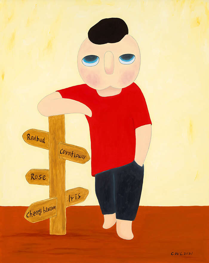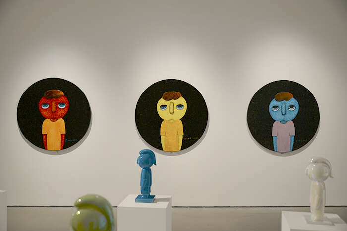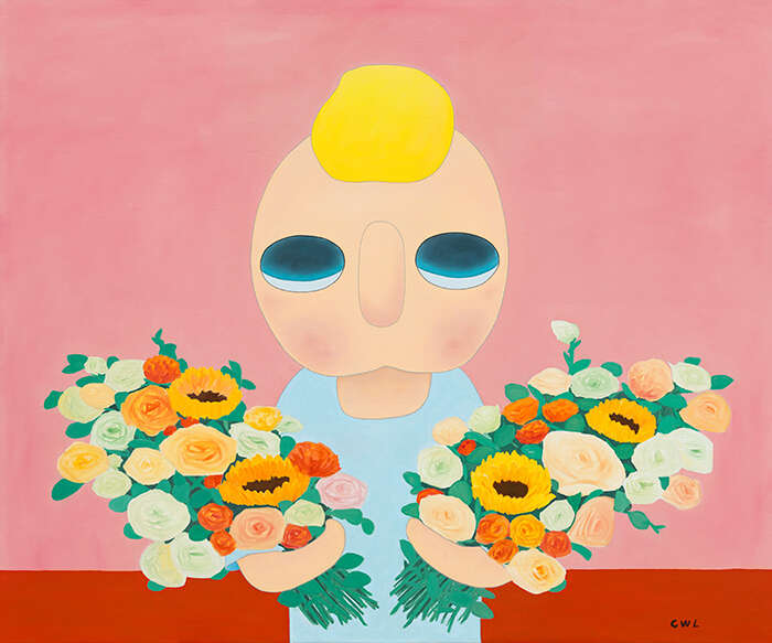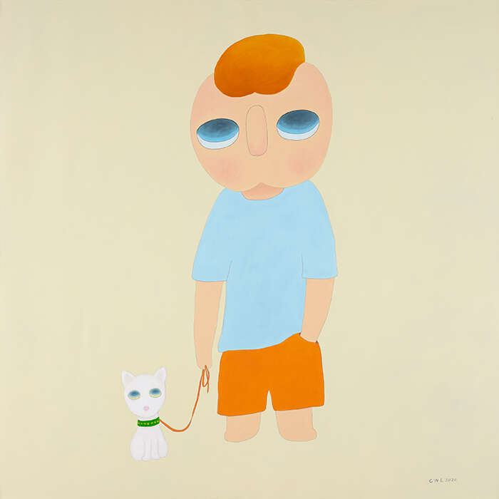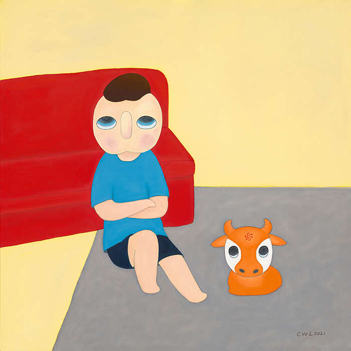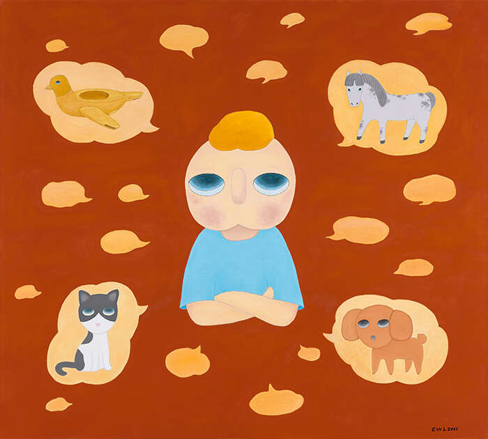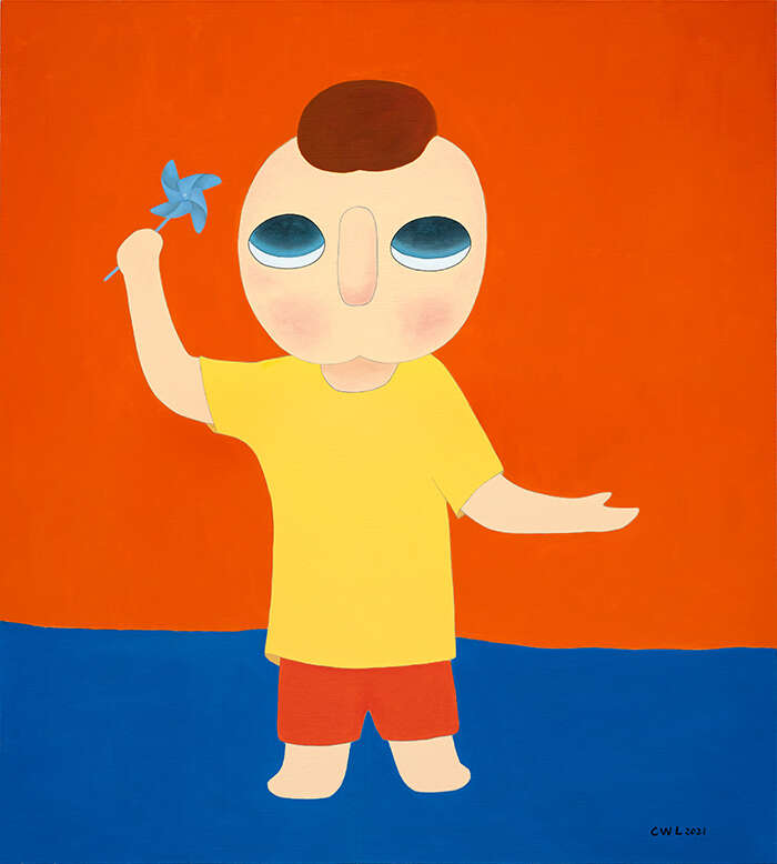 蔡万霖是一位用直觉创作的艺术家,他将自己的经历、阅读、以及对生活周遭事物的观察、体验相叠加,在时间的重叠中建立生命本体的联系。蔡万霖所创作的艺术形象“yy”,一个无嘴无耳、眼神空灵的小男孩,被认为是艺术家具有高辨识度的风格代码。该艺术形象既映射出艺术家的自我观照,也象征着在时代徘徊中思考着生活本质与方向的独立个体——没有嘴巴,却用一种沉默的状态去表达语言之外的意味;眼神空寂,却又蕴藏着一种天真的平静无畏,唤起观者心底的共鸣与慰藉。