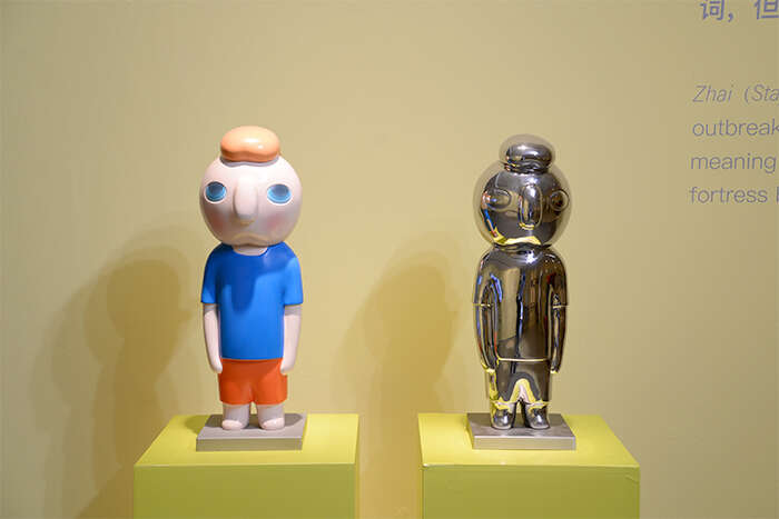 展览七大部分以蔡万霖代表作品为题,作为展览的开篇,《指南》这件作品选取的是一个独特且具高度概括性的“yy”形象,以此激发出不同个体对于困境的联想,作为展览之序,极具延展性。