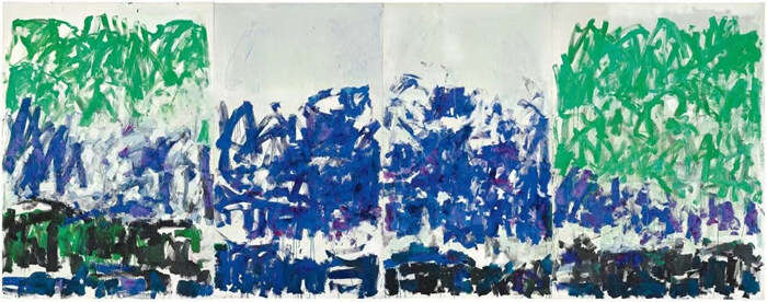 琼·米切尔,《再见之门》,1980年,布面油画,280×720厘米(第一幅:280×200厘米;第二幅280×160厘米;第三幅280×160厘米;第四幅:280×200厘米),1980年购藏蓬皮杜中心,巴黎,法国国家现代艺术博物馆-工业设计中心,AM 1980-528 图源:西岸美术馆
