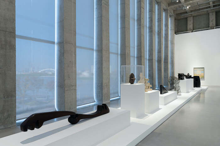 除了绘画,雕塑与空间游戏这个展厅拓宽了抽象艺术的研究领域。出生于阿尔及利亚的艺术家西蒙娜·布瓦赛克的雕塑像坚实的墙一样伫立在现场,揭示了原始艺术的影响。这位雕塑家从一开始就摒弃具象艺术,直面抽象,借用太阳、植物、火焰和其他图腾或纯诗意的形象来表达对原始艺术的热爱,伴随着对艾梅·塞泽尔 (Aimé Césaire)诗歌的阅读,创作了她的第一个太阳,1956年到1970年代,一系列用于公共建筑的作品更加凸显这位艺术家延续性的思考,能量聚焦,形式精简,似骨架式的结构超越了我们生活世界的脆弱性、不稳定性和短暂性。