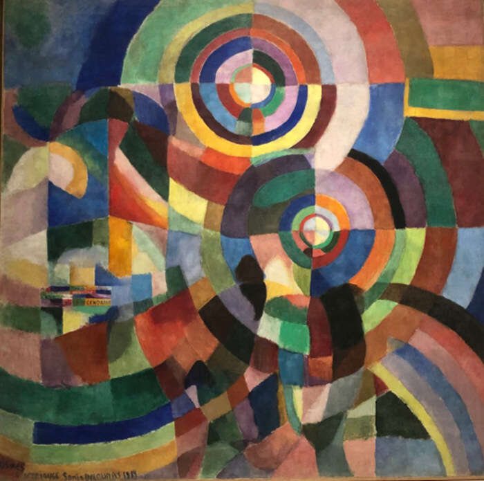 索尼娅·德劳内,《西伯利亚大铁路和法国小让娜的散文诗》,1913年,布面油画,1955年由艺术家赠予蓬皮杜中心,巴黎,法国国家现代艺术博物馆-工业设计中心,AM 3383 P
