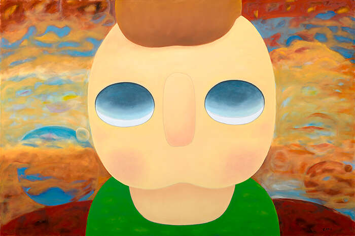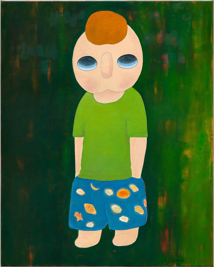 蔡万霖是一位用直觉创作的艺术家,他将自己的经历、阅读、以及对生活周遭事物的观察、体验相叠加,在时间的重叠中建立生命本体的联系。蔡万霖所创作的艺术形象“yy”既映射出艺术家的自我观照,也象征着在时代徘徊中思考着生活本质与方向的独立个体——没有嘴巴,却用一种沉默的状态去表达语言之外的意味;眼神空寂,却又蕴藏着一种天真的平静无畏,唤起观者心底的共鸣与慰藉。
