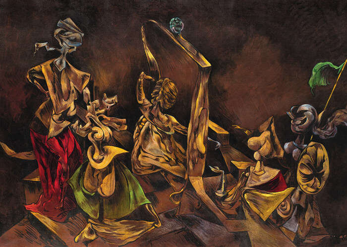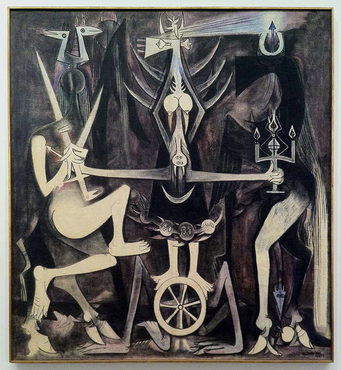 林飞龙(Wifredo Lam,又简译为威尔弗雷多·拉姆,1902-1982),“婚礼”(The Nuptials),1947,柏林国家画廊馆藏