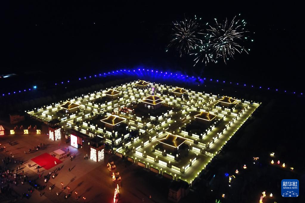 这是1月31日拍摄的九曲黄河灯阵(无人机照片)。