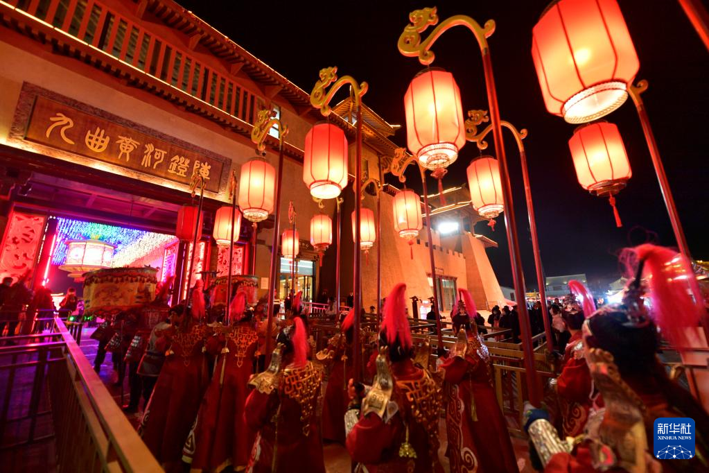 元宵佳节临近,位于甘肃省张掖市甘州区碱滩镇古城村的九曲黄河灯阵近日正式亮灯迎客。九曲黄河灯阵起源于黄河沿岸,因灯阵曲折绵延如黄河之龙曲而得名,在流传至张掖后被当地人民传承下来。