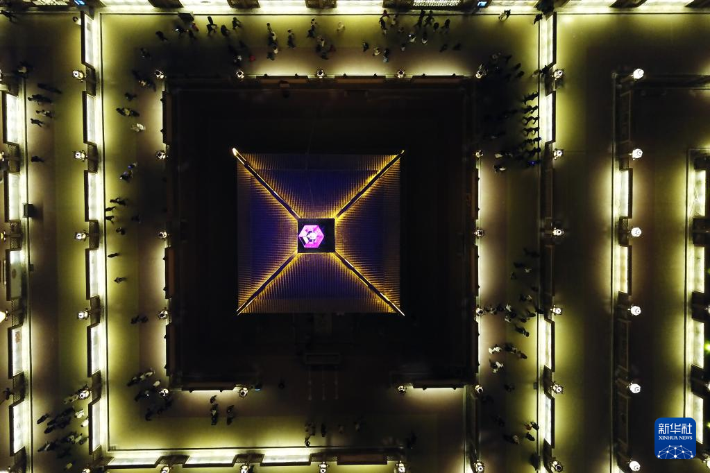 这是1月31日拍摄的九曲黄河灯阵局部(无人机照片)。