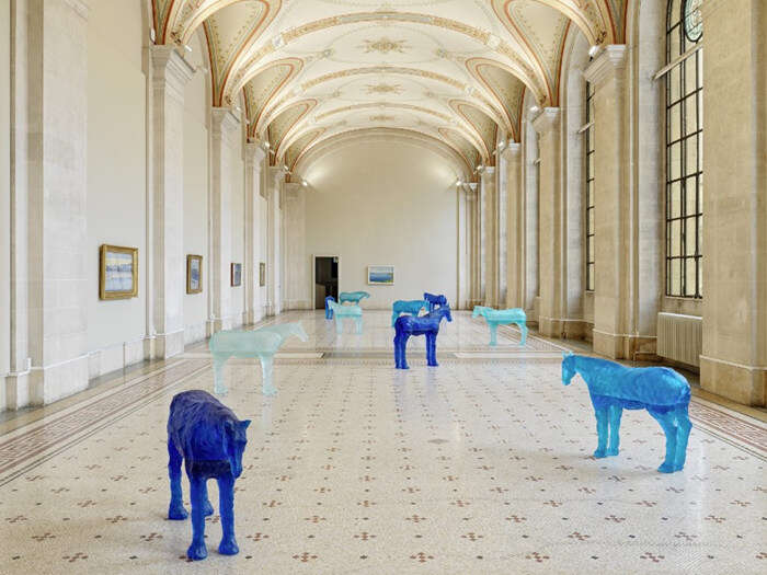 乌戈·罗迪纳于 2020年创作的玻璃马,创造了与费迪南德·霍德勒(Ferdinand Hodler)描绘日内瓦湖和图恩湖的11幅景观画作的完美对比。来自世界不同海洋的水和空气充满了玻璃马,每一匹玻璃马皆为容器,里面充满从地球上不同海洋中抽取的水和空气。于此,将浩瀚化为形,无边化为有界,存在有限中的无限。