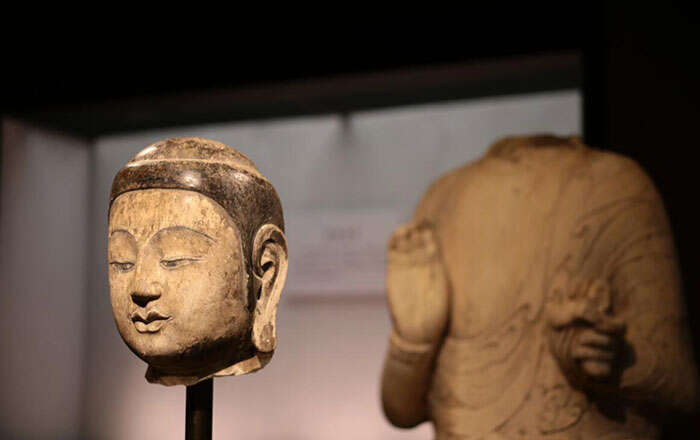 2016年03月29日,星云大师捐赠的北齐释迦牟尼造像佛首回到河北,入藏河北省博物馆。(图片来源:视觉中国)