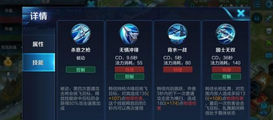 打得过就追,打不过就跑是韩信技能的特点。被动自带的攻击速度效果让他也不必在攻速上追求太多便可以迅速打出击飞。1技能自带的击飞和两段唯一,二技能的攻防一体以及大招在团战中的控制效果都很不错。